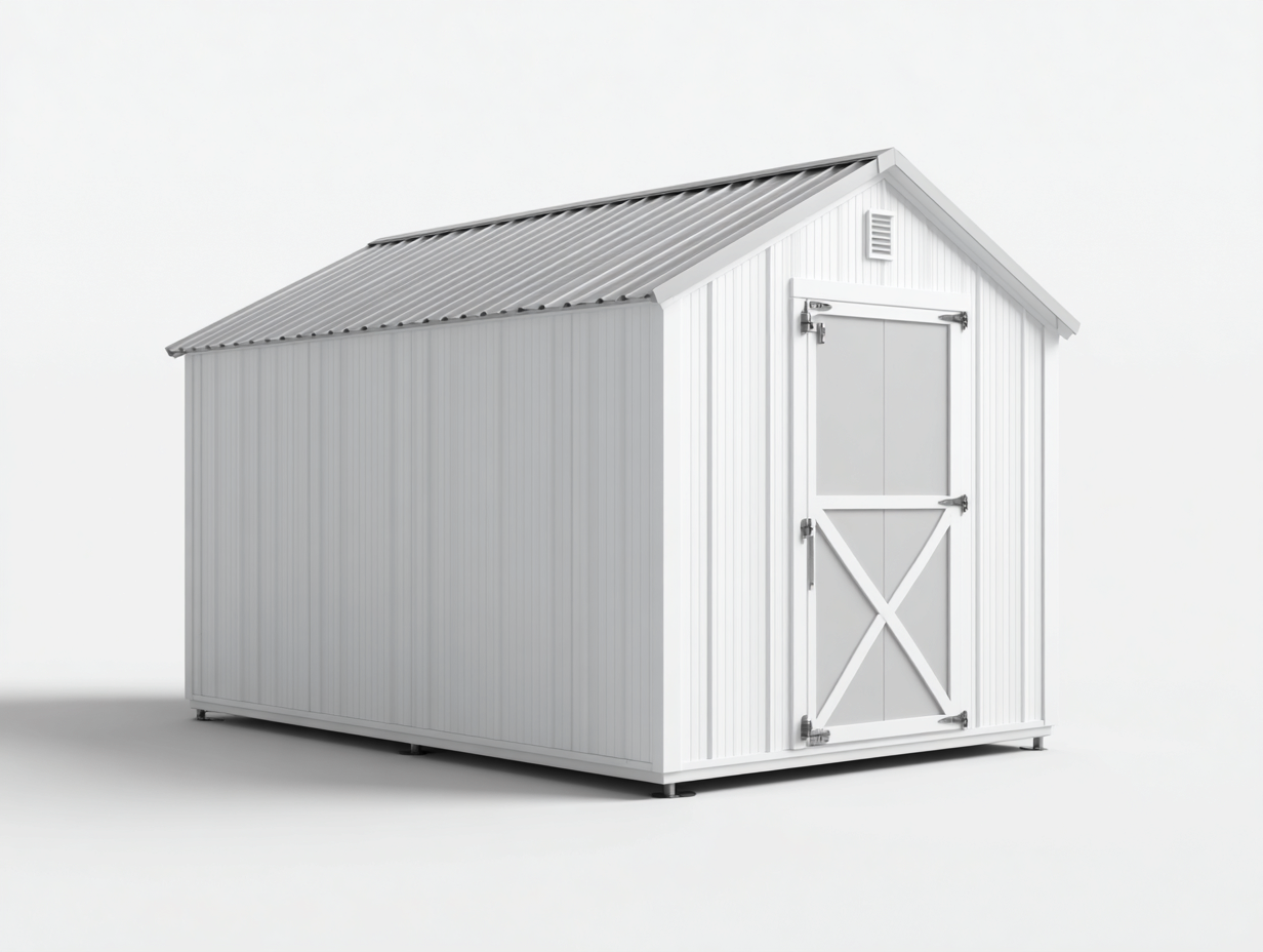 Casetta da giardino dal design funzionale, ideale per creare uno spazio dedicato al rimessaggio in esterno.