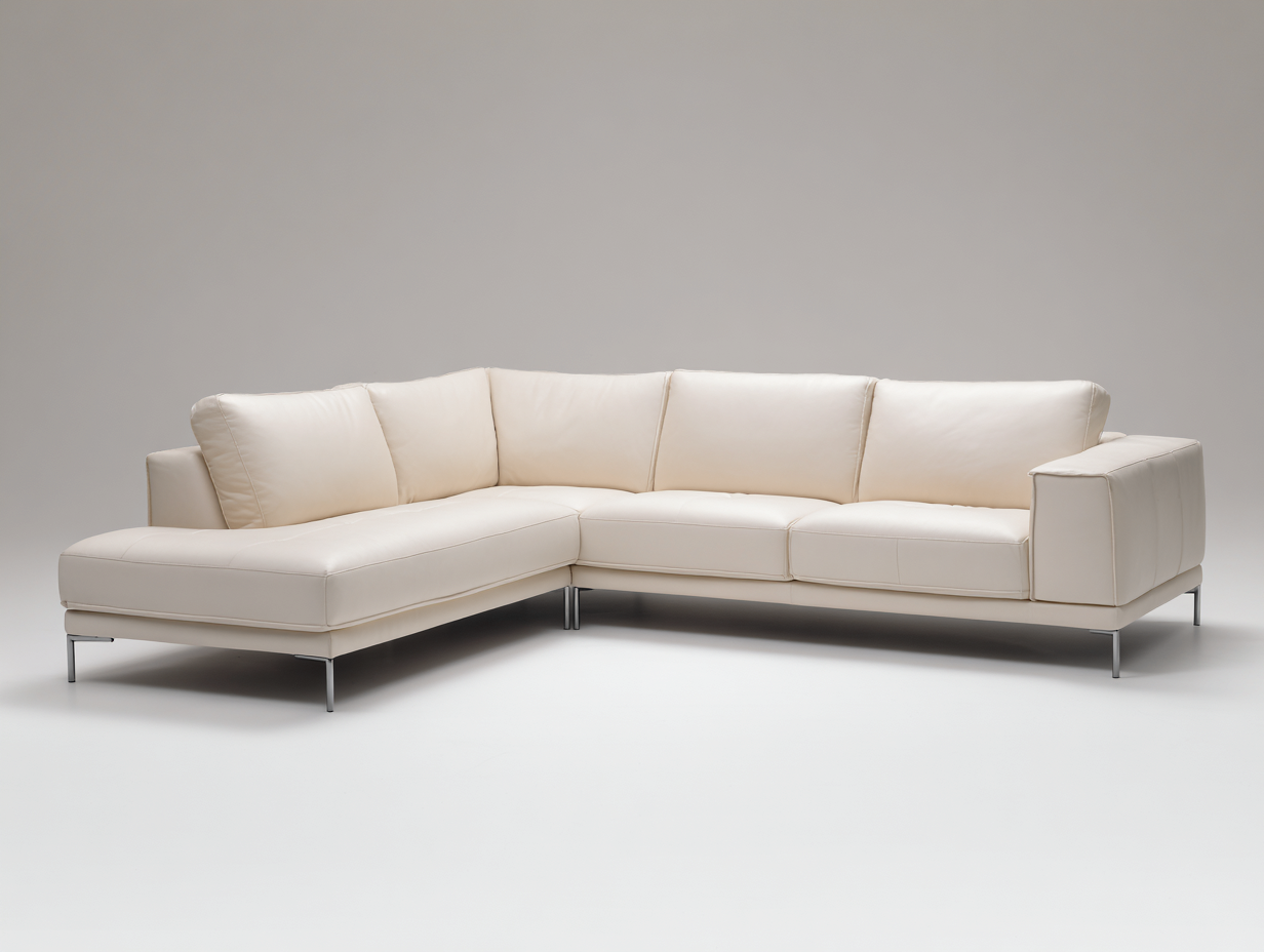 Divano angolare elegante, pensato per ambienti raffinati e luminosi.